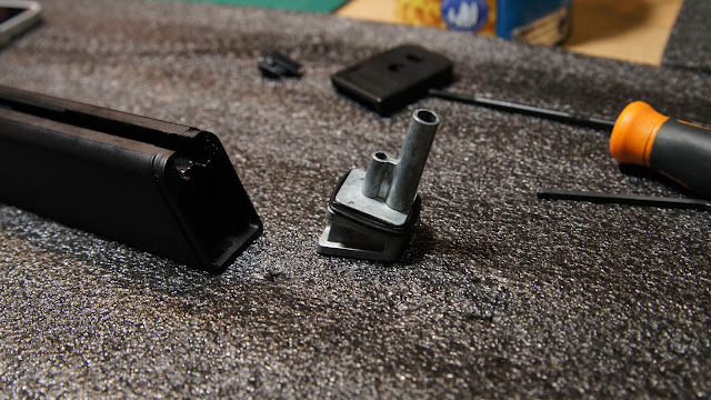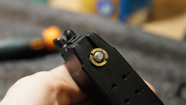 Tak “poprawioną” podstawę/stopkę montujemy z powrotem do magazynka. Całość skręcamy i nabijamy gazem. Sprawdzamy czy operacja pomogła.