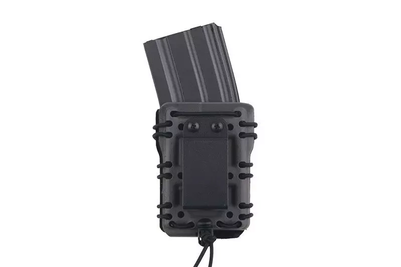 Nie posiada klapy, co umożliwia błyskawiczne dobycie magazynka, a jednocześnie trzyma go pewnie i nie pozwalają na przypadkowe wypadnięcie, nawet po montażu "do góry nogami". Zapewnia to konstrukcja ładownicy - składa się ona z dwóch połówek, mocno ściśniętych gumową linką.