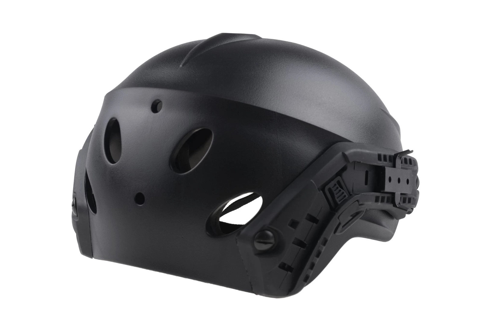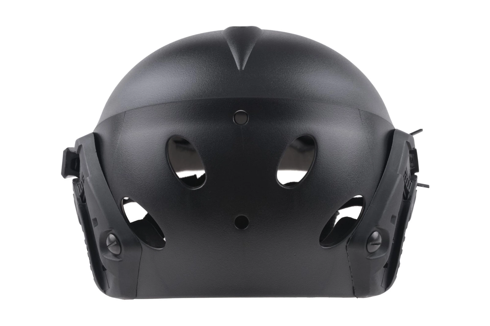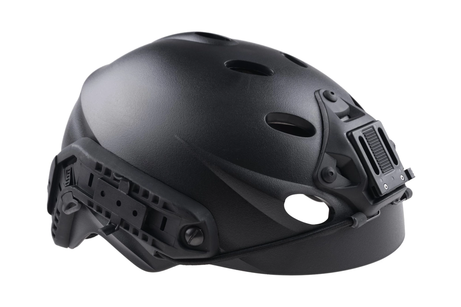 The helmet is equipped with a set of side mounting rails that allow for attachment of an entire array of additional equipment like goggles, tactical flashlights, headsets, etc. In the front part of the helmet is a polymer mount and drawstrings enabling the attachment of NVG systems.