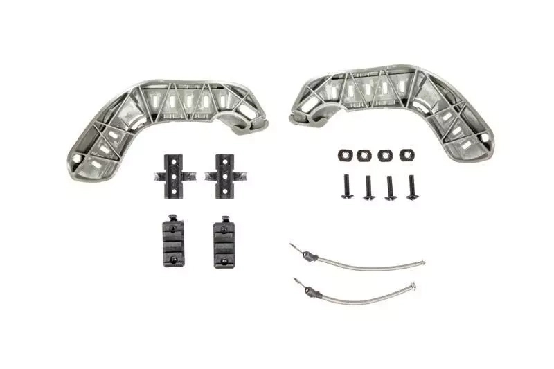 A set of mounting rails and accessories made of polymer, intended for the attachment to MICH 2000 helmets by FMA. The set includes two mounting rails, RIS rails, universal rails and rubber NVG drawstrings. The set also includes all essential screws, shims and nuts.