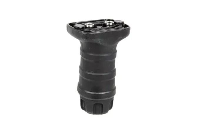 A tactical forward grip made from a durable polymer. The mount is compatible with KEYMOD standard. Inside, there is a room for spare batteries. Increases control over the carbine and provides a more sure grip.