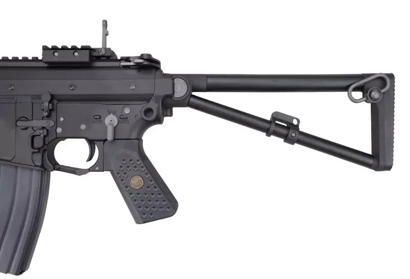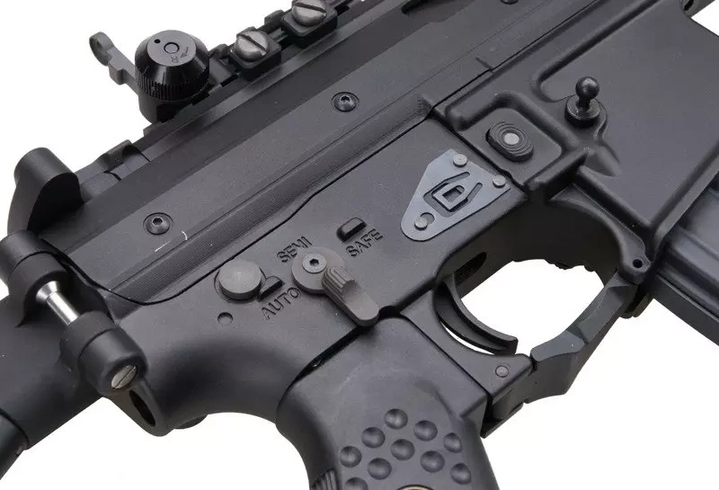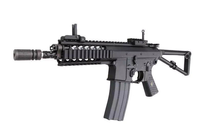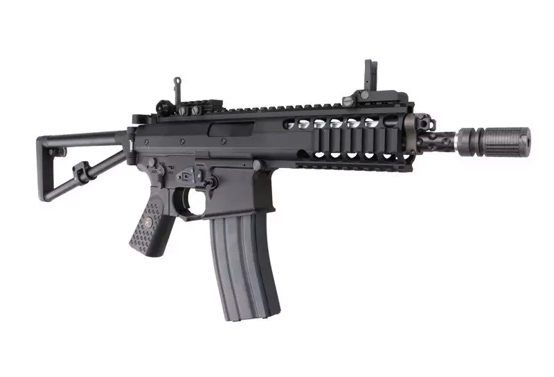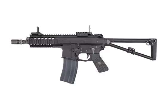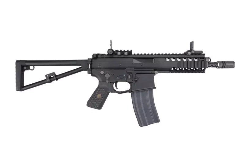 The replica in this variant is characterised by a short barrel, which makes it easier to manoeuvre it during operations in tight spaces and at short distances, where speed of response is crucial. It is also equipped with a set of RIS rails allowing the attachment of additional devices and accessories such as laser target markers, tactical handles, torches, etc.