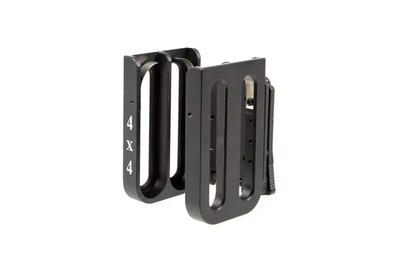 A pouch made from aluminum and polymer intended for carrying and rapid equipment of 8 12GA shells. Rails that store the shells and the rear side were made from aluminum. The mount that allows for the attachment of the pouch to a belt (the width is fully adjustable up to 60 mm max) or MOLLE was made from durable polymer.