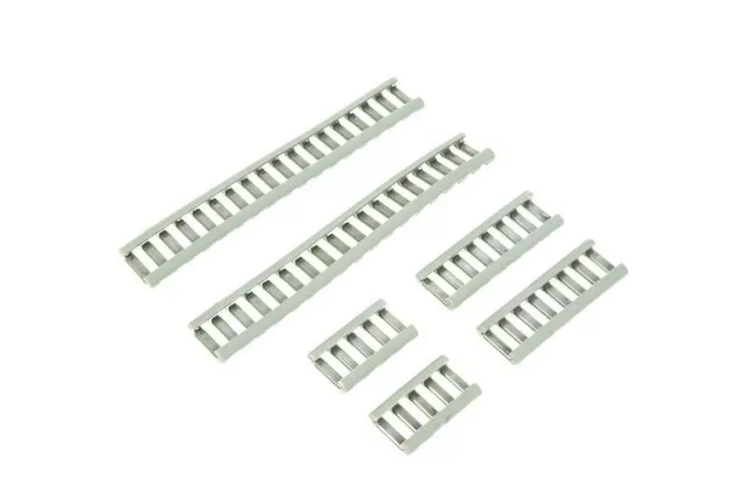 These rail covering panels are made of rubber. Using them on your replica will give you more stability and a surer grip. Helps prevent your replica from slipping out of your hands. This offer consists of three sets, of two panels each - for different rail lengths. Designed to be mounted on 22mm RIS systems.