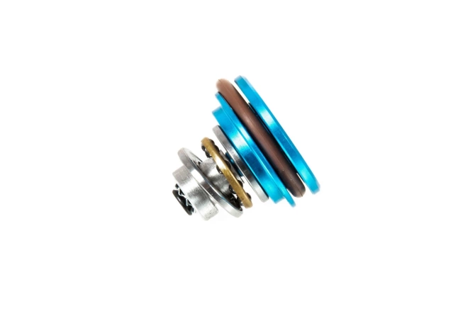 Ball bearing piston head with double o-ring from Specna Arms. The product was made of aluminum with the use of CNC machines, which guarantees the high quality of the product. The use of the bearing prevents the spring from collapsing, which makes it possible to maintain a constant muzzle velocity for a longer time.