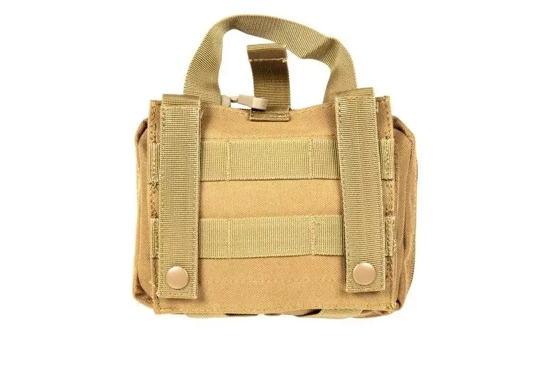 A rip-away medical pouch made of durable nylon that can be attached to MOLLE-compatible equipment. The pouch is protected from accidental detachment by a tape with a buckle. On the outside, there are two hook and loop panels that enable the attachment of, for instance, a medical cross. The pouch features a main compartment with a zipper, while inside there is an organizer for necessary medical items in the form of a mesh pocket and elastic bands.