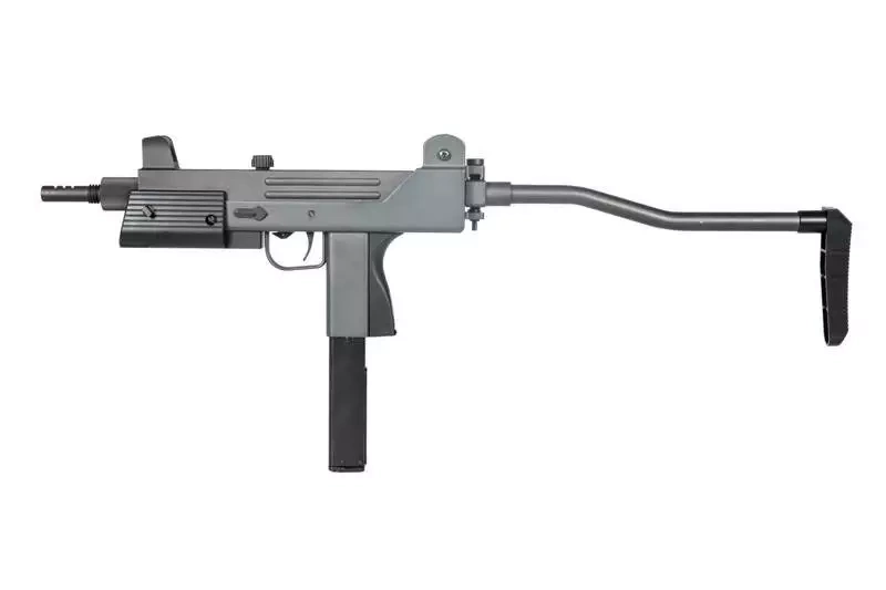 HGA-203ZX submachine gun replica made of metal elements and polymer. Metal parts include the external barrel, receiver, stock, magazine as well as all mobile and internal elements. Parts made of polymer include the handguard, stock pad and the pistol grip overlay.
