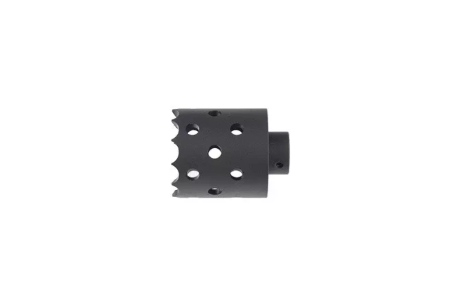 A flash hider with an interesting appearance by CYMA made of metal. The flash hider is mountable on a 14 mm left-handed thread.