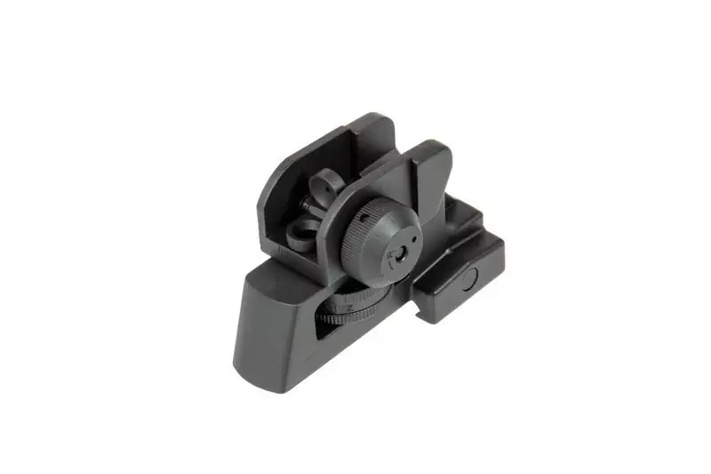 The rear sight intended for AR15 carbines is made of aluminum and features both vertical and horizontal adjustment. Key mechanical elements were made of steel. The sight has 2 diameter settings.