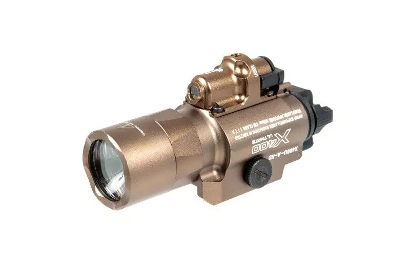 A compact X400U flashlight is a perfect choice when a small size flashlight of considerable power is necessary. Ideal supplement for pistols and submachine guns equipped with RIS mounting rails.