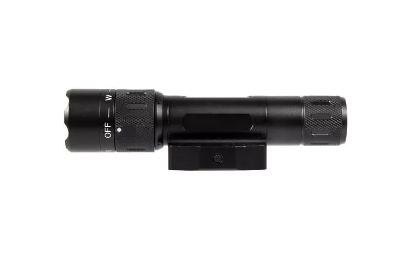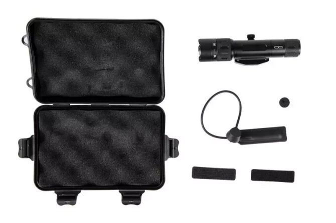 A compact Scout Light flashlight is a perfect choice when a small size flashlight of considerable power is necessary. Ideal supplement for submachine guns and carbines. The flashlight comes with a standard mount for a 22 mm RIS rail. The flashlight also features an IR diode that can be turned on by turning the switch under the flashlight head into the appropriate position.