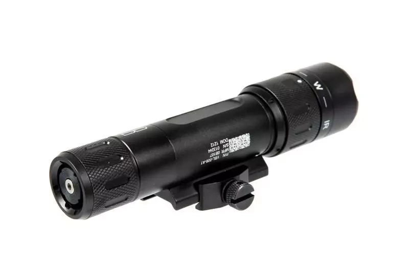 A compact WMX flashlight is a perfect choice when a small size flashlight of considerable power is necessary. Ideal supplement for submachine guns and carbines. The flashlight has two modes of operation: white and IR light. The flashlight comes with a standard mount for a 22 mm RIS rail. The mount can be set at an angle.