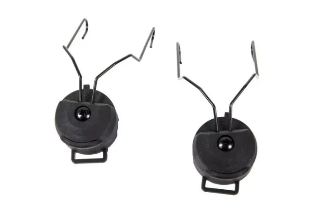Mount made from polymer and metal elements. Elements made from polymer include the mounts for the earpiece and the RIS mount. The RIS rail included in the set is made from metal. The mount enables the attachment of the earpiece from the headset to a helmet. Once attached, it is possible to remove a helmet and the earpiece at the same time.