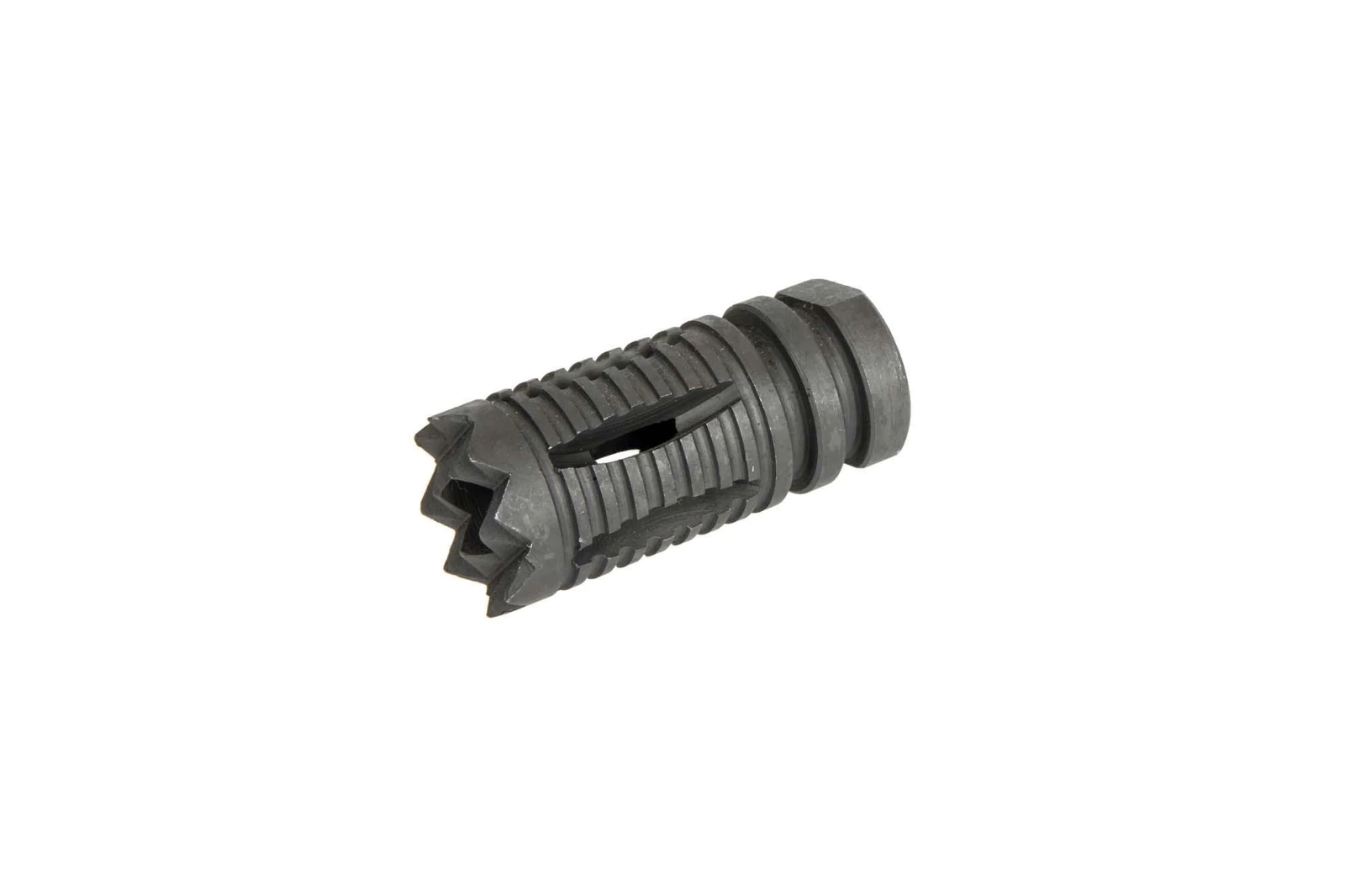 Wykonana ze stali replika urządzenia wylotowego. Przeznaczona do montażu na replikach typu M4/M16 pasuje na lufy zakończone gwintem 14mm CW lub CCW.