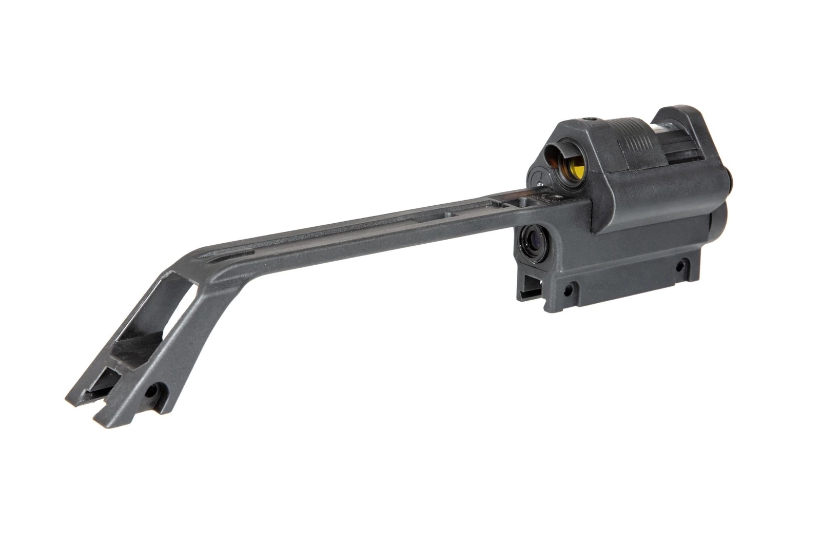 The aiming module by Specna Arms consists of a scope with fixed magnification of 1.5x as well as a red dot sight integrated in the transport handle. The product was made of durable polymer. The module is powered by two LR1 batteries (included in the set) and dedicted for attachment in G36 replicas. The set includes all parts necessary for assembly and accessories.