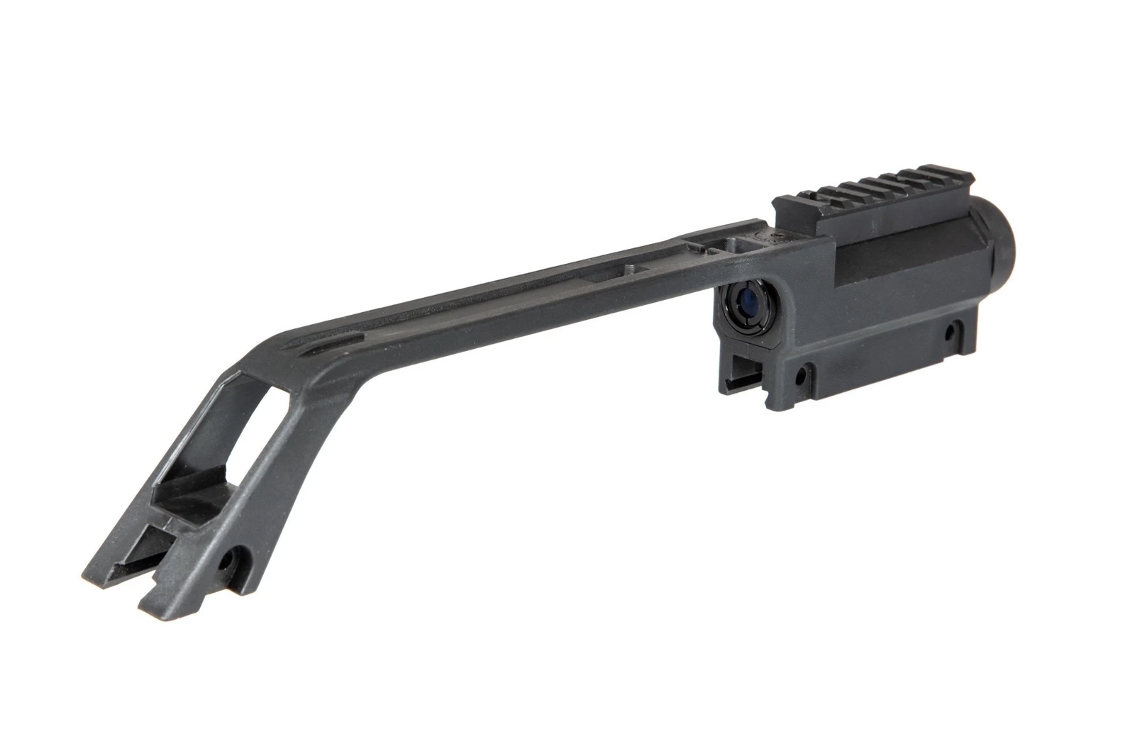 Transport handle with an integrated scope with fixed 1.5x magnification. The product was made of high-quality polymer and it is dedicated for attachment in G36 replicas. The scope features a RIS rail that enables attachment of additional accessories, for example, a red dot sight.