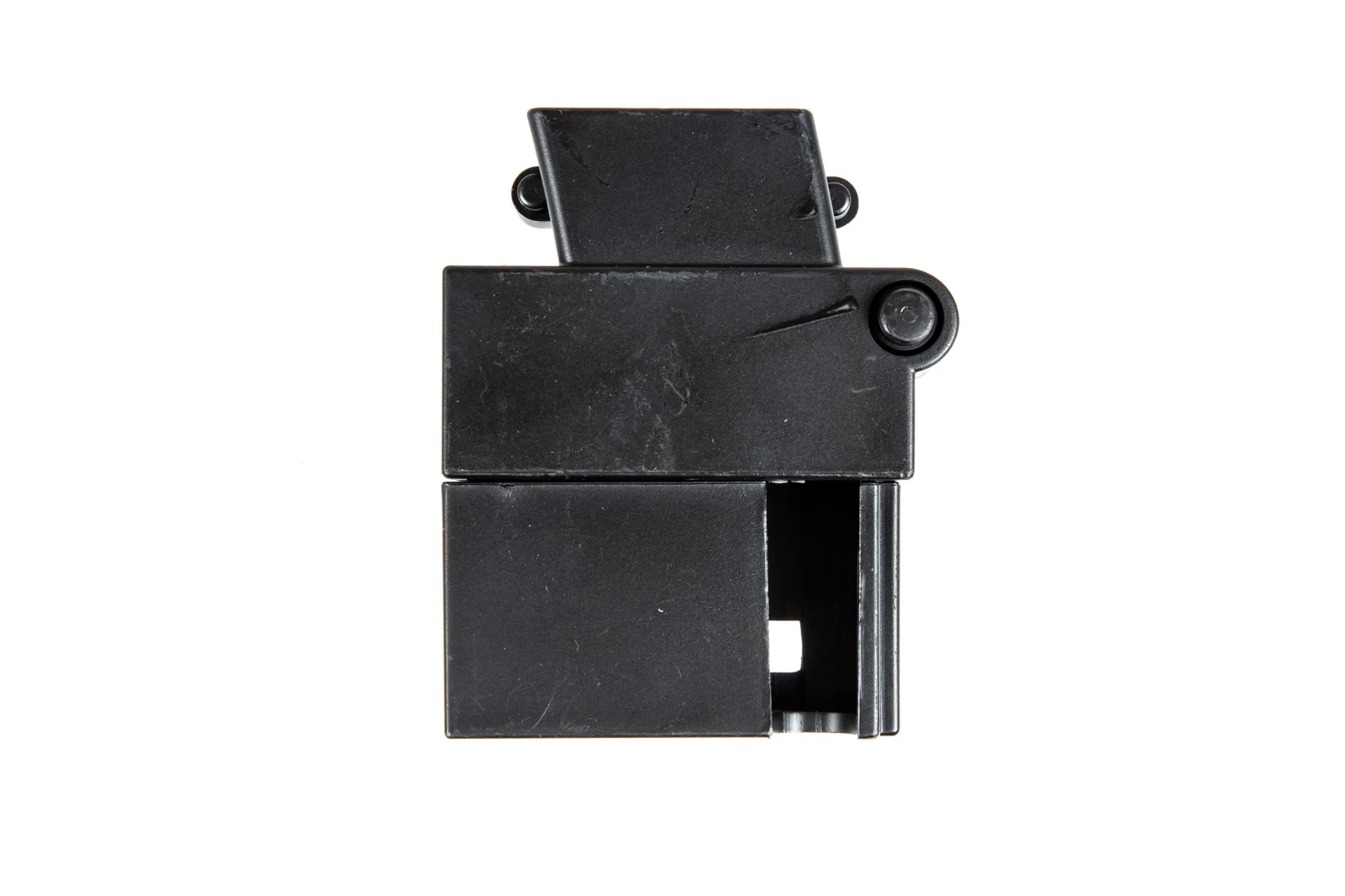 A polymer speedloader adapter intended for loading MP5 magazines.