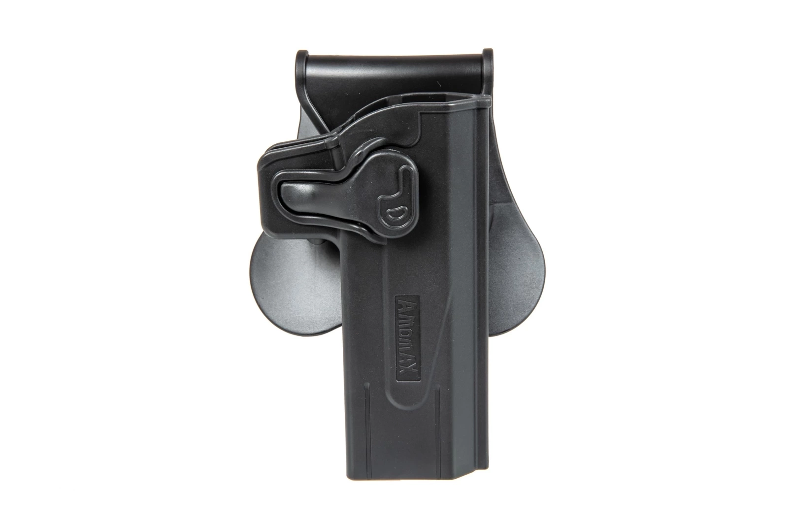 A holster made of durable polymer by Amomax for Hi-Capa 2011 pistols. It features an intuitive lock, released with an index finger when reaching for a gun.