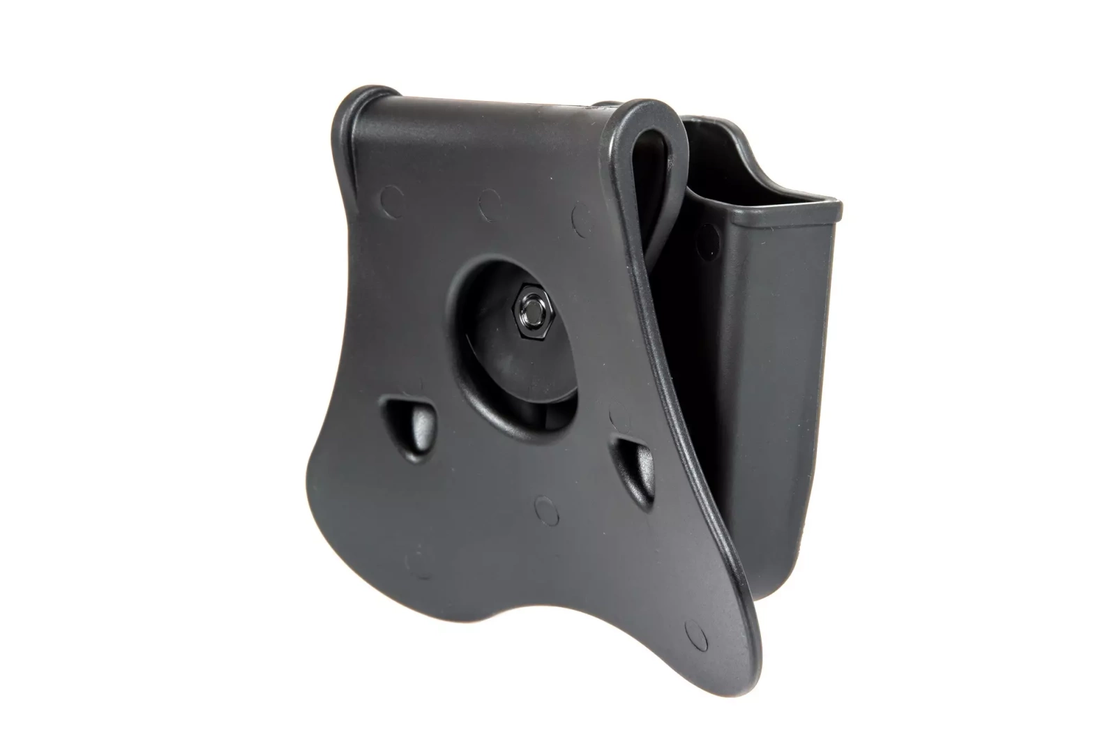 A pouch made of durable polymer by Amomax for two magazines for P226 / M9 /CZ P-09 pistol replica. The integrated adjustment system allows for the adaptation of the pressure put on the magazine according to the User’s preferences.