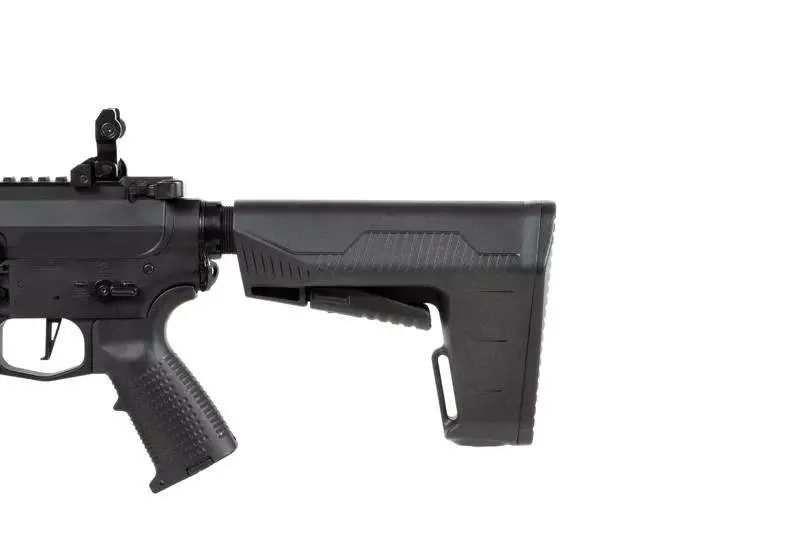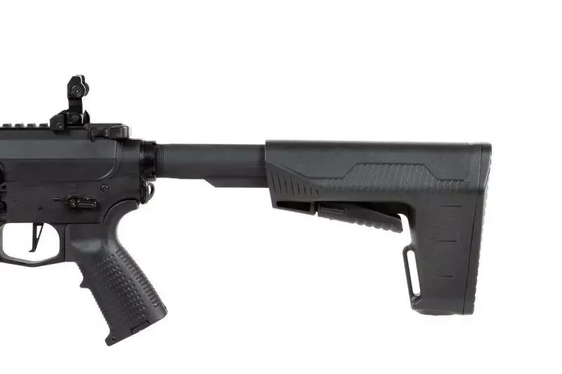 Nemesis series is characteristic for its replicas made entirely of metal with steel parts. The implementation of an ergonomic grip and double-sided manipulator buttons improve the comfort of use. The foldable stock with a battery compartment enables the adaptation of the length of the replica to a User and makes it a compact construction, ideal for CQB scenarios. The receiver bears manufacturer markings and a serial number.