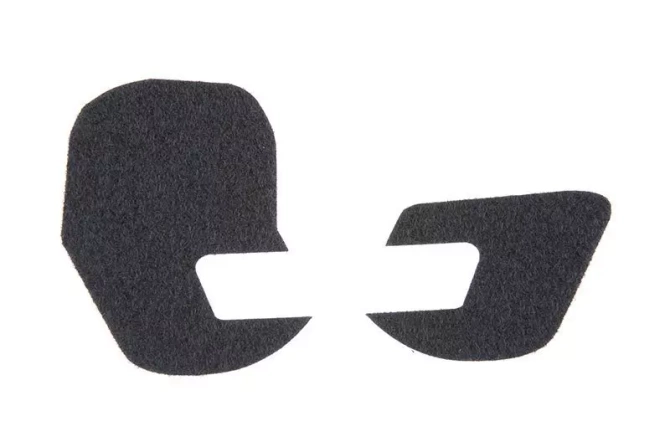 Stickers with hook and loop fasteners in a special shape intended for placing on hearing protectors, which allows for attaching, for instance, an electronic marker or a patch.