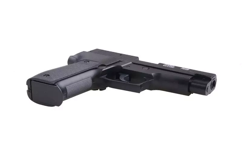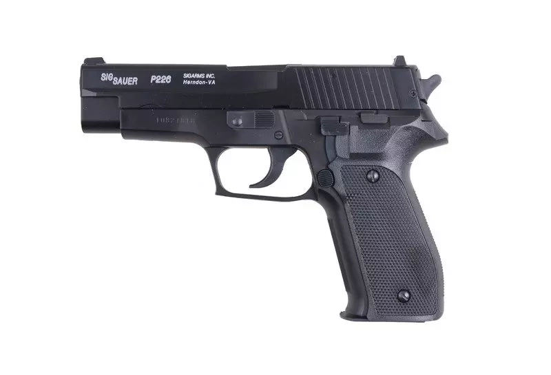 The airsoft gun replica of the Sig Sauer P226 pistol is made of metal and ABS. The replica’s pistol frame and magazine are made from high-quality ABS. The slide, along with markings characteristic for the real steel version, is made from metal. This airsoft gun is equipped with the BAXS HOP-UP system, which increases the stability of the trajectory of BBs.