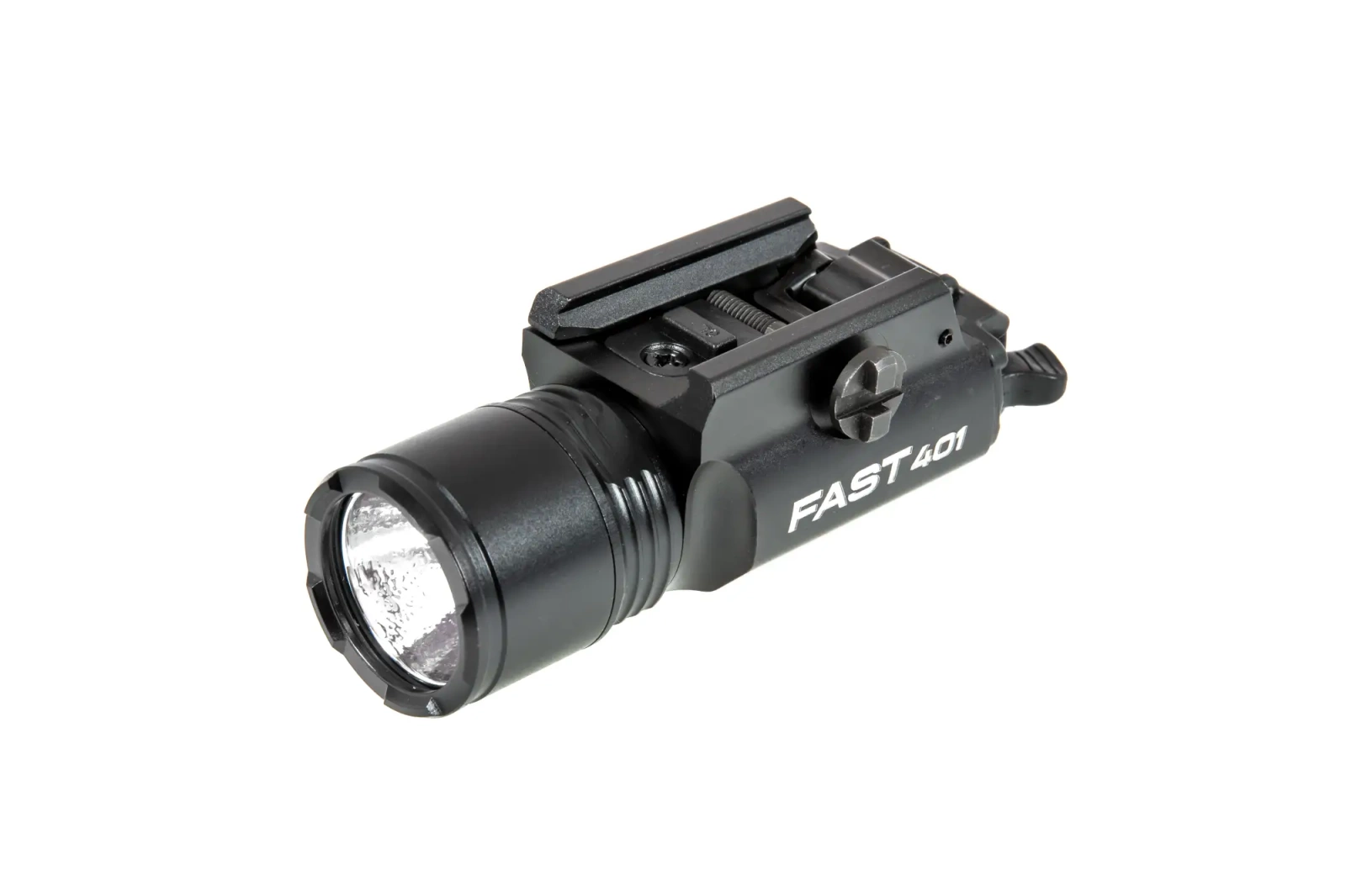 FAST 401 to mocna latarka przeznaczona do montażu na pistolet wyposażony w szynę montażową picatinny lub typu Glock. Model ten wyposażony jest w diodę CREE XM-L2 (U3) o mocy 800LM. Latarka świeci w trybie 100%. Obudowa latarki wykonana została w wytrzymałego, anodyzowanego aluminium 6061-T6. Specjalne uszczelki zapewniają jej wodoodporność o standardzie IP67. W latarce wykorzystano wysokiej jakości szkiełko mineralne o wysokiej przeźroczystości. Przycisk pozwala na włączenie trybu chwilowego lub ciągłego.