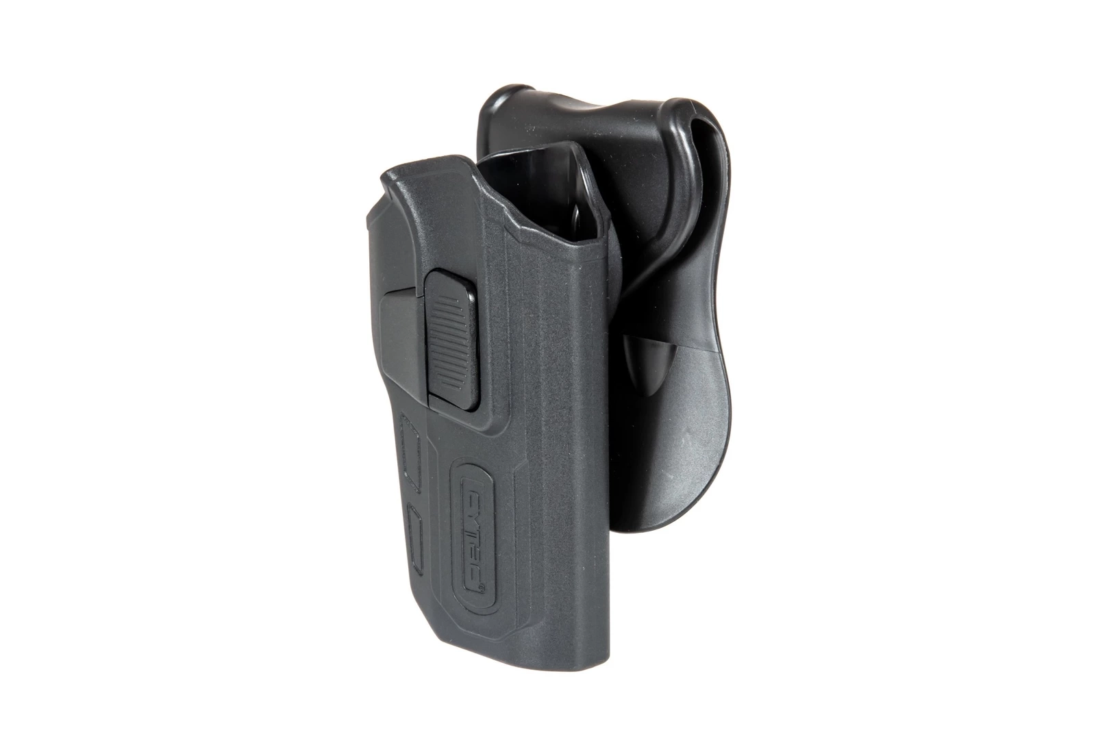 Kabura R-DEFENDER posiada intuicyjny mechanizm szybkiego zwalniania / blokowania, obsługiwany palcem wskazującym. Pistolet jest automatycznie blokowany po odłożeniu do kabury.
