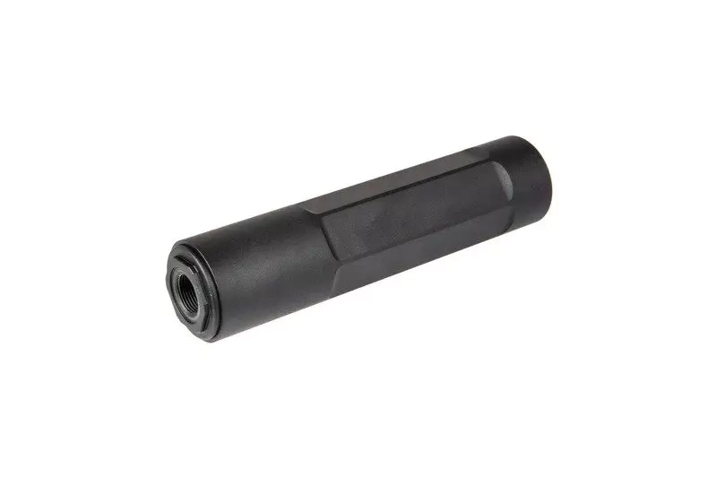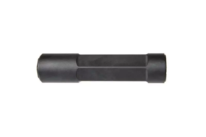 A silencer made of durable aluminum equipped with a 14 mm CCW thread (left-handed). The silencer has a row of special chambers that reduce the sound of firing.
