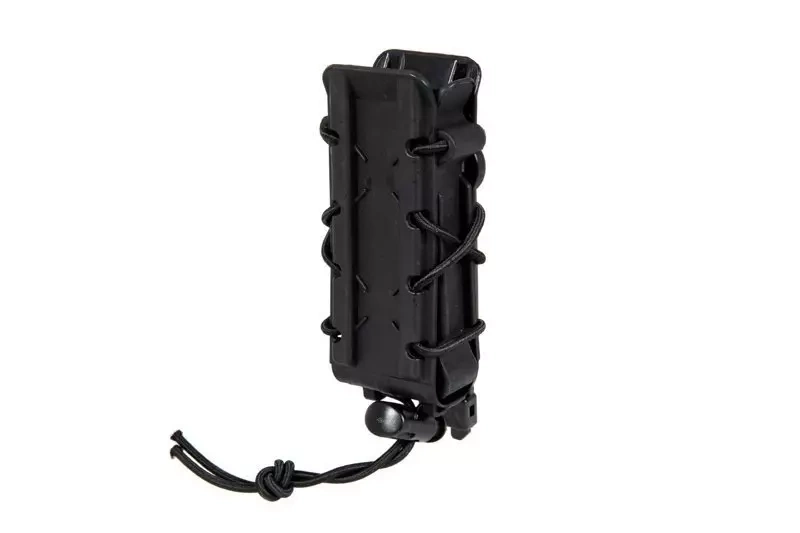 A fast type pouch made of durable polymer capable of holding a single 9 mm pistol magazine. The pouch features a special elastic cord for the adjustment of the “opening” of the pouch that better adjusts the pouch to the contents and prevents magazines from falling out. The pouch can be attached to a belt with a maximum width of 50 mm. The set includes a classic MOLLE mount and an additional, comfortable and stable belt paddle.