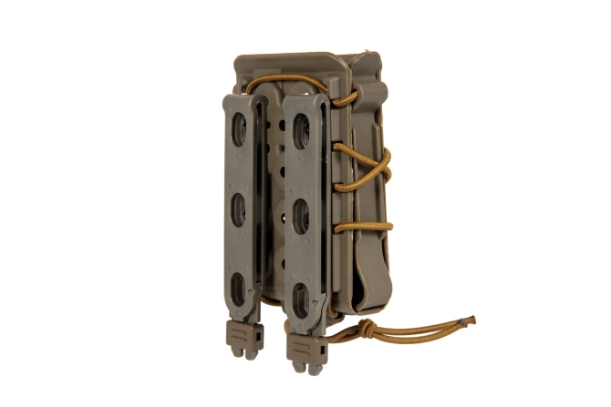 Made out of durable plastic, the fast type pouch houses one M4 / M16, AK or other similar size magazine. The pouch features a special elastic cord for the adjustment of the “opening” of the pouch that better adjusts the pouch to the contents and prevents magazines from falling out. The pouch can be attached to a belt with a maximum width of 70 mm as well as on equipment compatible with the MOLLE system.