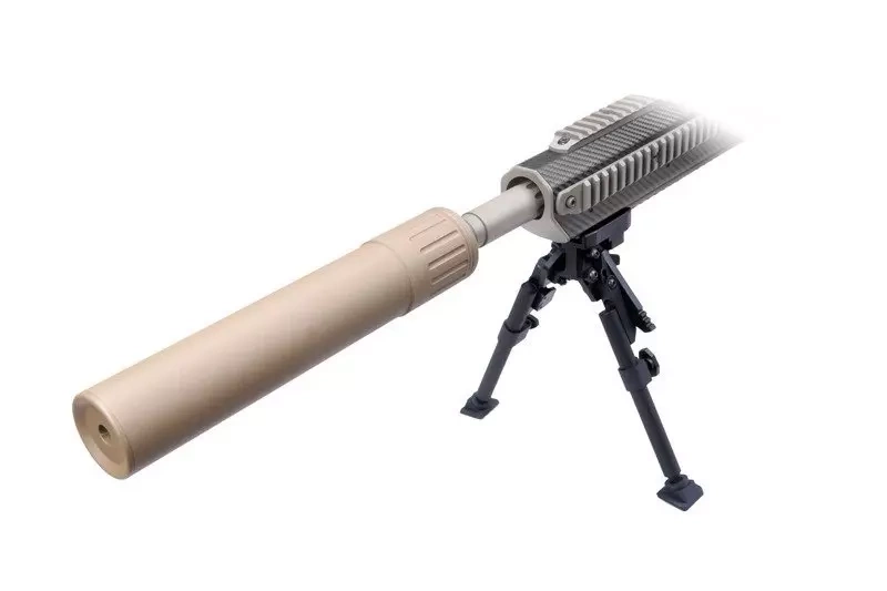 The suppressor and the bi-pod visible in the pictures is not a part of the set.