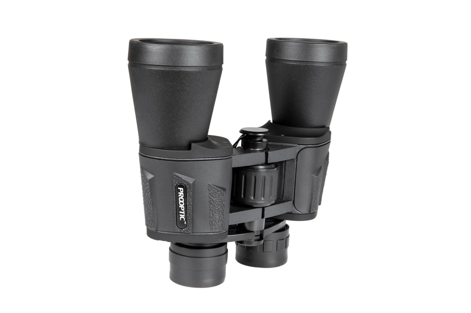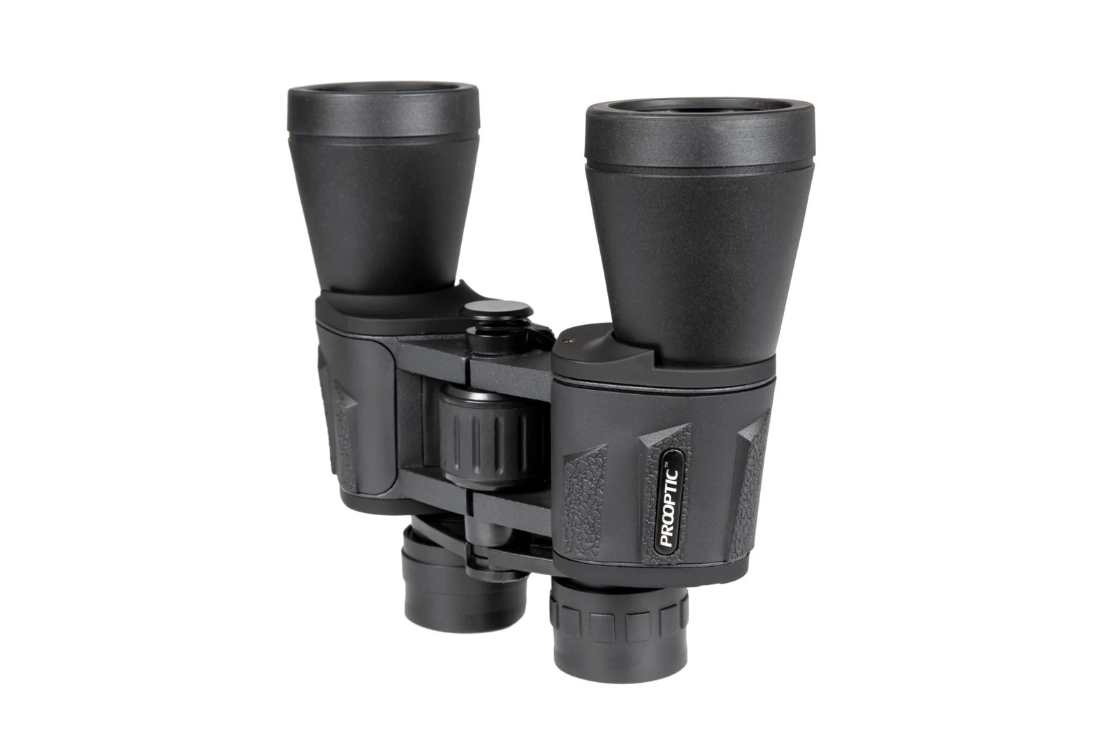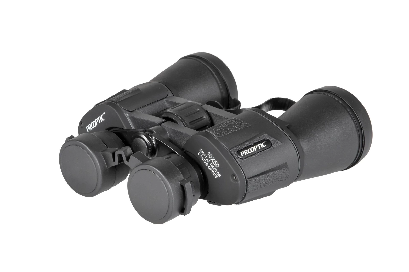 Constant 10x magnification and eyepiece diameter of 50 mm constitute strong parameters that guarantee this equipment will prove itself in any observational conditions by providing clear, vivid and contrasting images. Lenses are covered with a special coating made of magnesium fluoride that increases the light transmission factor and guarantees natural representation of colors. Coating of this type eliminates majority of accidental glare that are a real nightmare of low-class binoculars. A comfortable central screw simplifies rapid setting of focus. Moreover, binoculars are equipped with additional dioptric adjustment.