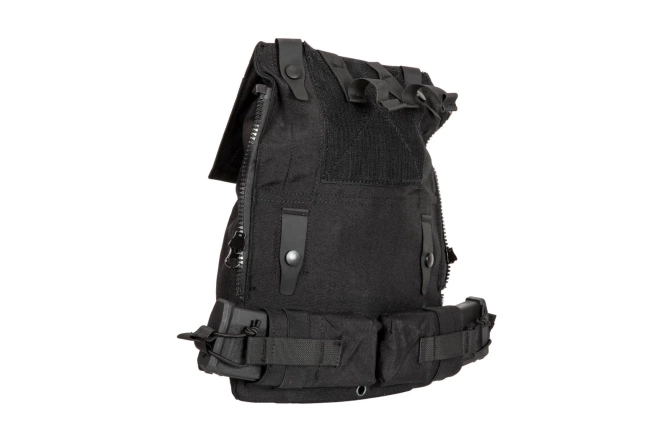 The backpack is dedicated for Rush 2.0 Plate Carrier vests and it is attachable to the back of the vest using a zipper, hook and loop fasteners and tapes. The use of this backpack enables the user to carry additional equipment, ammunition or a hydration bladder.