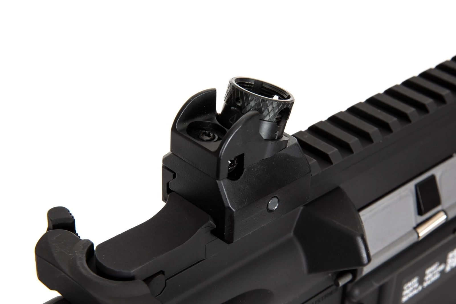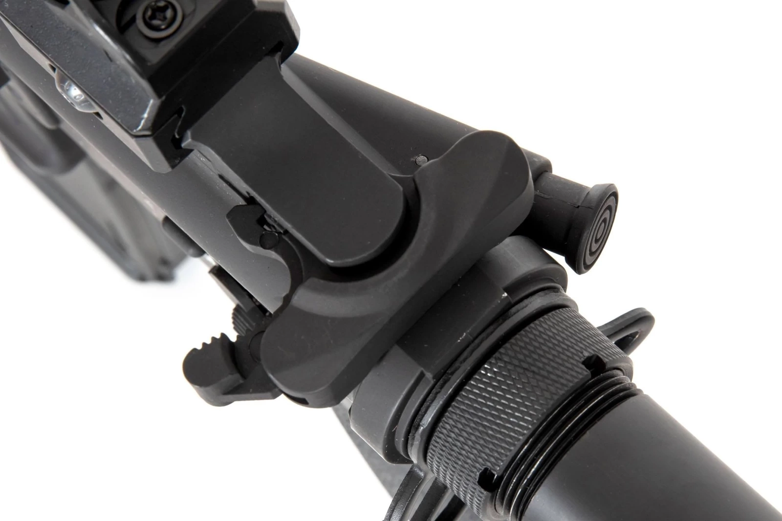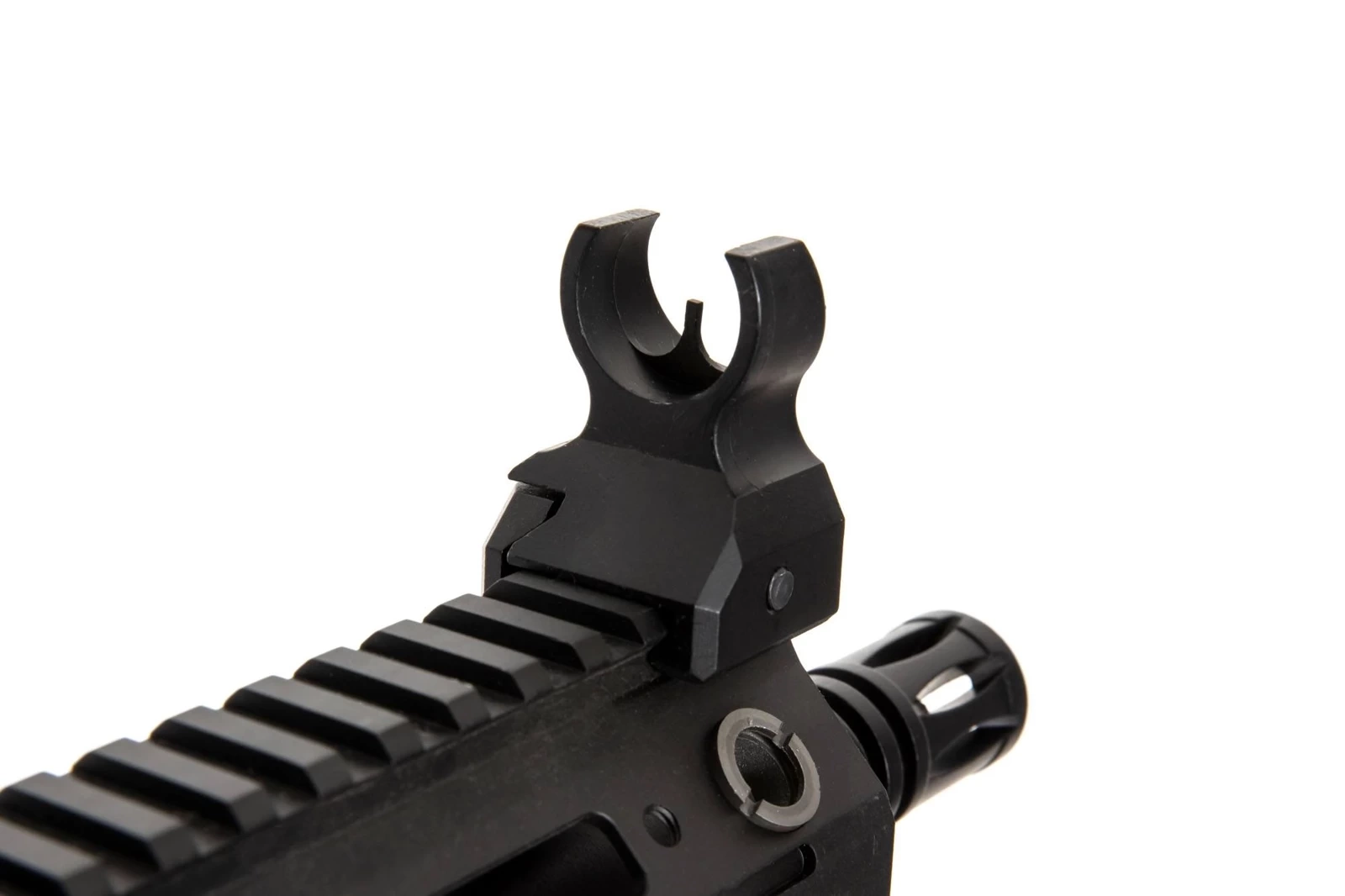 The SA-H22 carbine replica is equipped with a light Free Float front with an upper top rail. On the sides and on the bottom of the front, there are openings to which sections of RIS rails can be mounted for mounting all kinds of tactical accessories - flashlights, lasers or grips. The barrel of the replica is ended with a muzzle device mounted on a 14mm CCW thread. Mechanical sights were placed on the top RIS rail.
