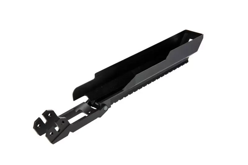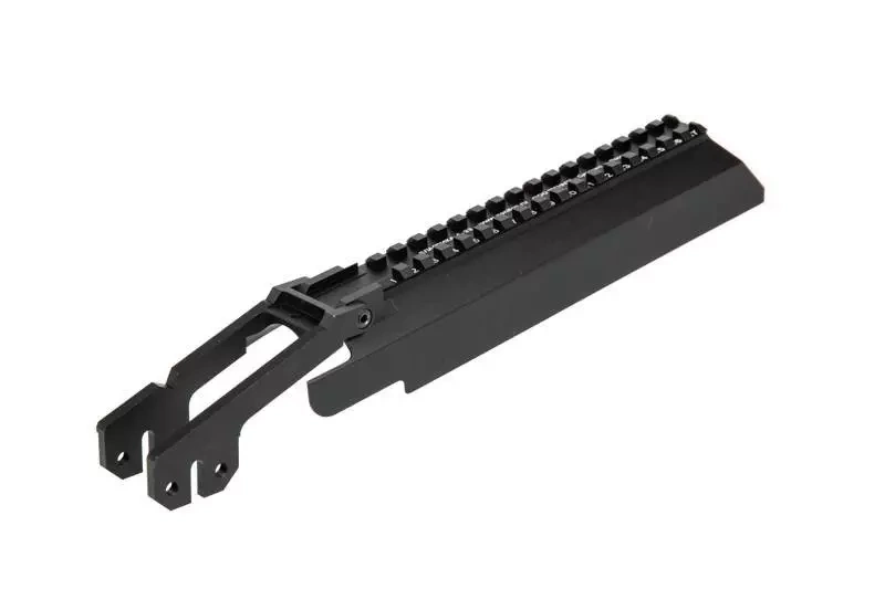 The cover, unlike the standard one, has a 22mm RIS standard mounting rail allowing the use of a large range of accessories. The hinge can be mounted to a dedicated handguard, or a simple modification can be made to an existing handguard - using the screw holes.