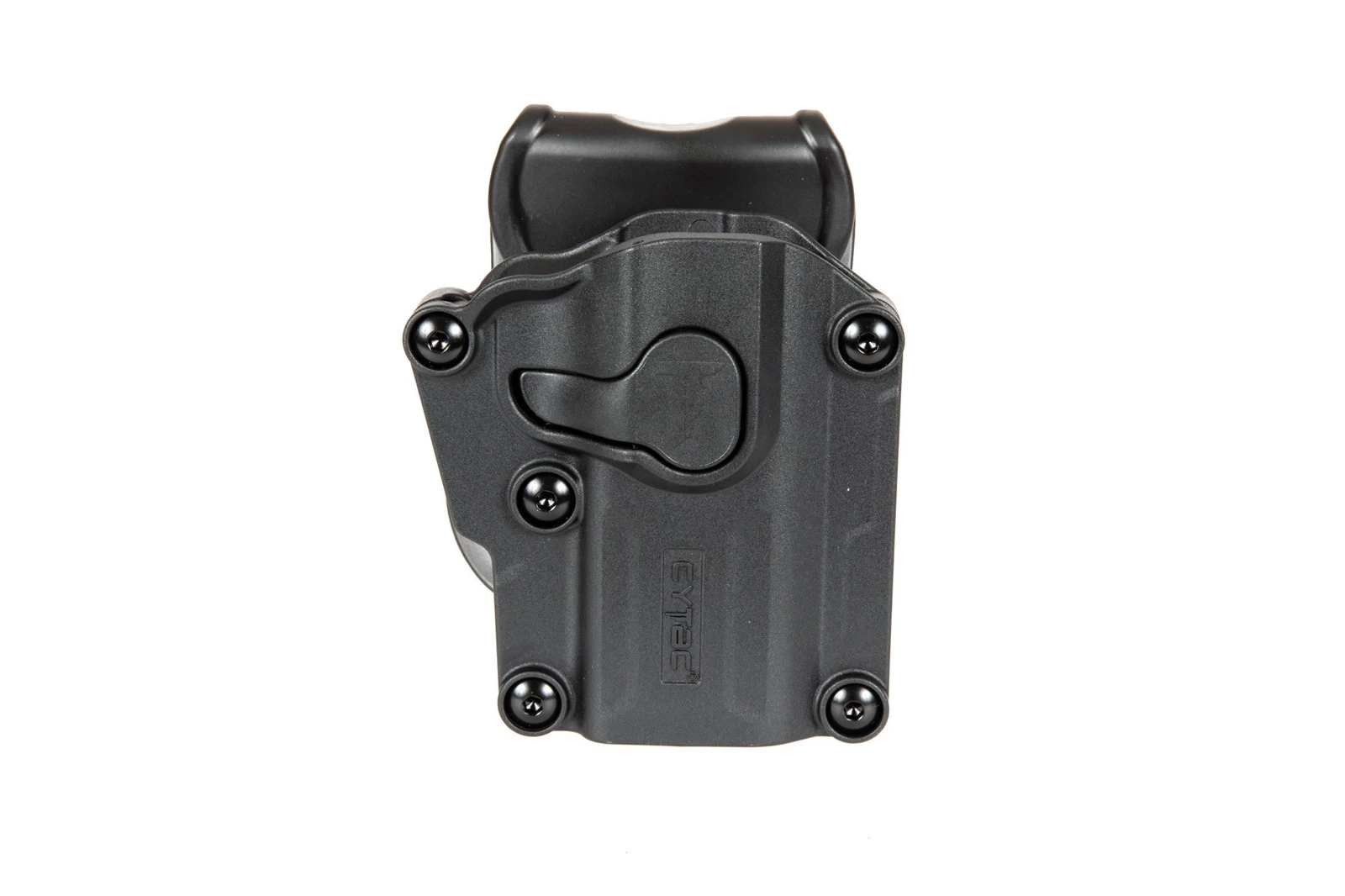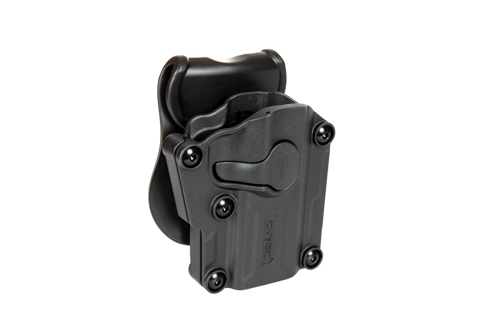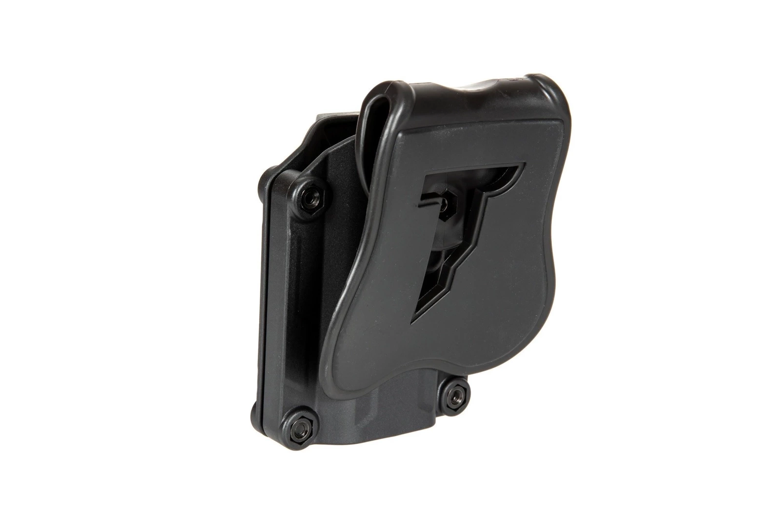 The holster is equipped with a rotary mounting system that makes it possible to change the angle of the pistol within a range of 360 degrees, according to user preferences. Adjustment is simple and it is done using a hex key.