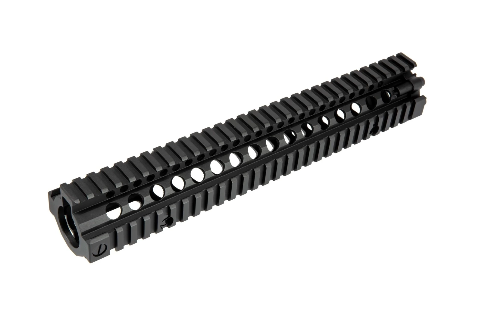 A RIS 22 mm mounting rail made of metal intended for installation in M4 / M16 replicas. The rail has a complete length of 12" / 303 mm.
