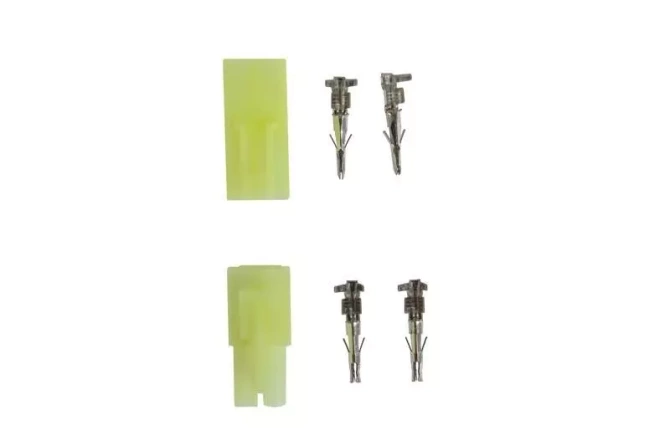 A complete Tamiya connector intended for installation in AEG electric replicas. The set includes a male and female connector.