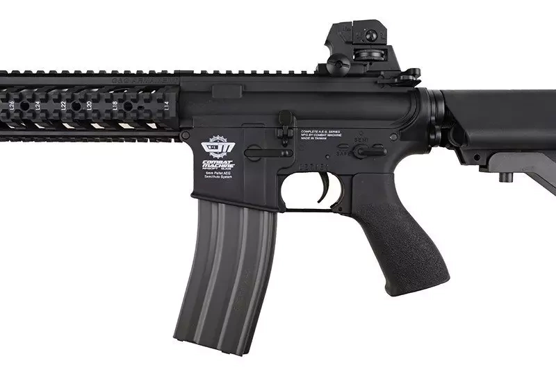 The CM16 Raider carbine replica made by G&G was made within the Combat Machine Project which goal is to deliver high class replicas in the price which can be considered economical. The Combat Machine replica characterize themselves by the highest, characteristic for the G&G company, quality of make and the operation culture as also the high class of the used materials. The main factor allowing to lower the price is the use of a high class plastic body instead of a metal body. It is also a important fact that the body itself was made of plastic reinforced by fiberglass - just like the front grip, the stock or almost all plastic elements. On the other hand, the outer barrel, the stock’s pipe, the tactical sling attachment points, the magazine casing and most of the minor elements were made of metal.