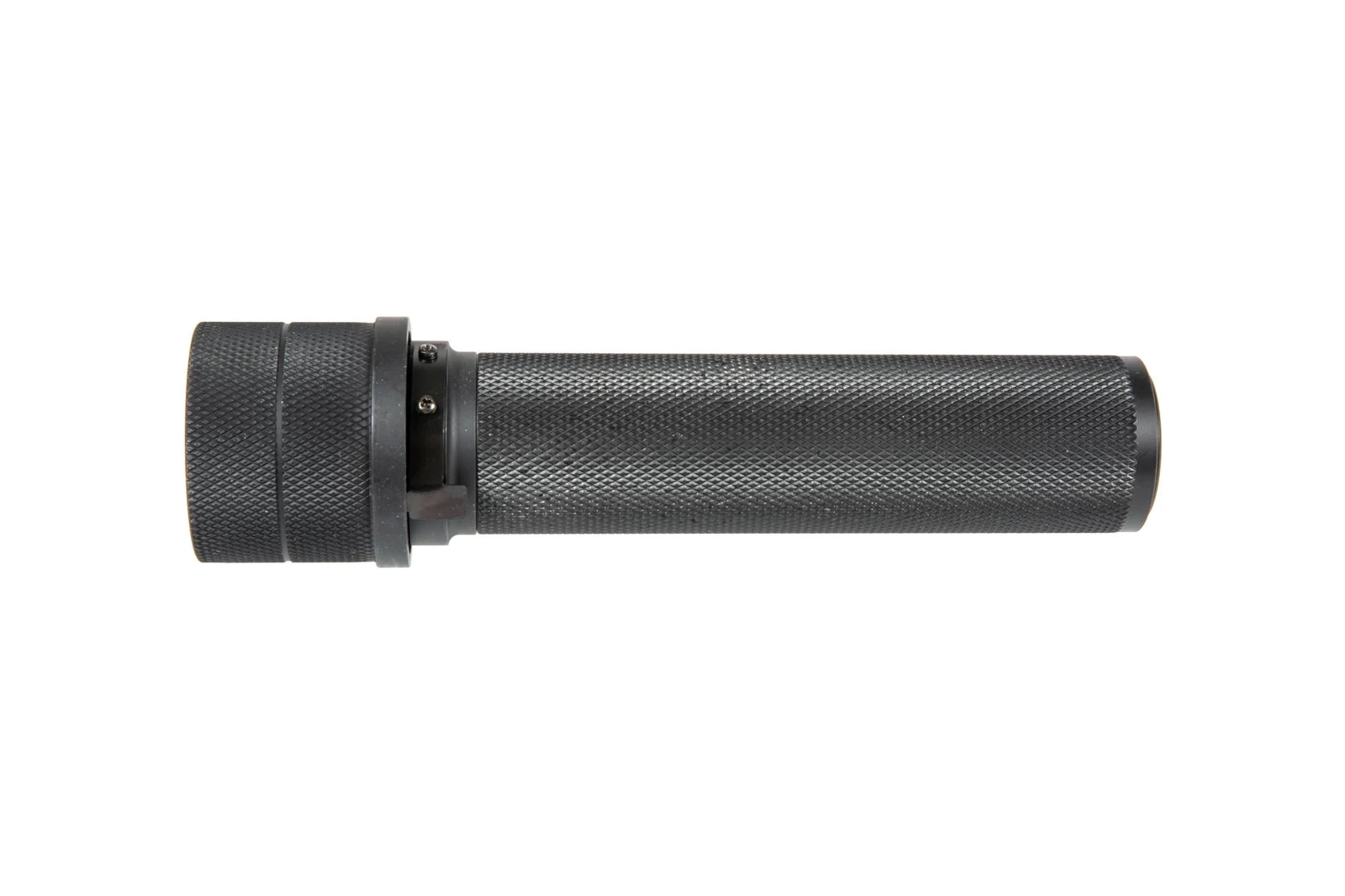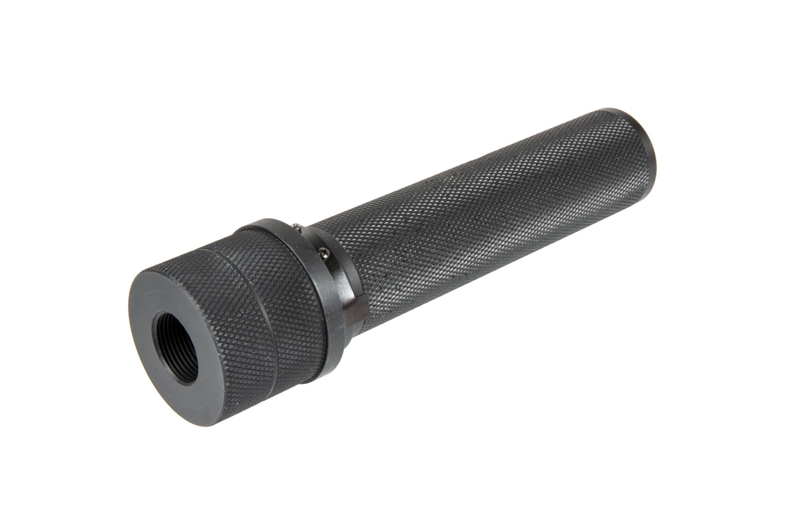 A silencer with PRO type dampening (chamber-based dampening system - chambers are separated with polymer barriers), dedicated for AK and AKM replicas. The silencer is equipped with an internal 24 mm thread and a 14 mm adapter. The silencer was manufactured using CNC technology. Aluminum used for its production has been anodized, which allowed to create an adequate anti-corrosive layer that safeguards the silencer from corrosion and unfavourable conditions.