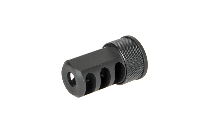 A 45 mm long, metal flash hider dedicated for SRS A2 replicas and others, equipped with a 14 mm CCW thread. .338 A2 flash hider is compatible with DTSS silencers as it features an external 24 mm CW thread.