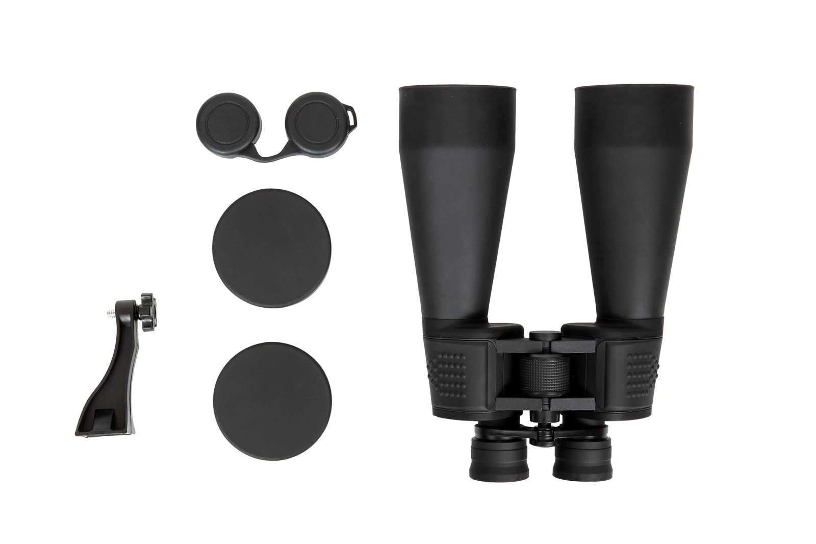 Constant 15x magnification and eyepiece diameter of 70 mm constitute strong parameters that guarantee this equipment will prove itself in any observational conditions by providing clear, vivid and contrasting images. Lenses are covered with a special coating made of magnesium fluoride that increases the light transmission factor and guarantees natural representation of colors. Coating of this type eliminates majority of accidental glare that are a real nightmare of low-class binoculars. A comfortable central screw simplifies rapid setting of focus. Moreover, binoculars are equipped with additional dioptric adjustment.