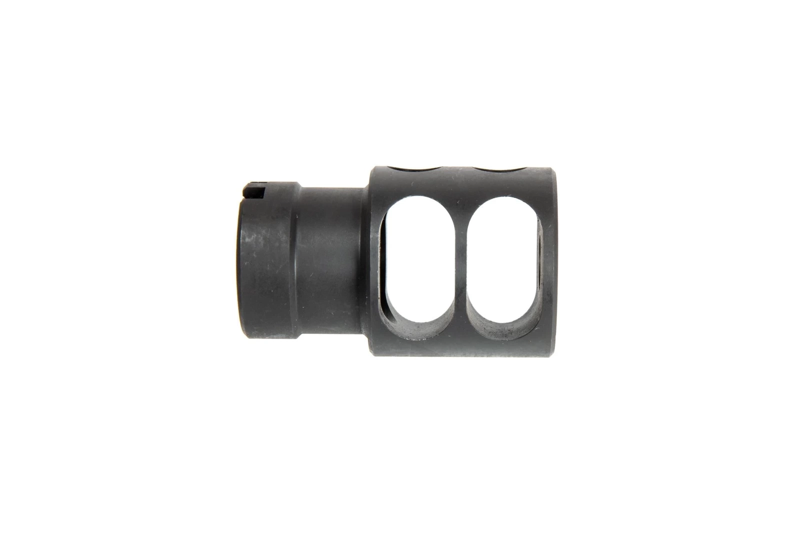 Steel muzzle device dedicated for AK replicas. It is also compatible with any carbine featuring a barrel with a standard 14 mm left-handed thread.
