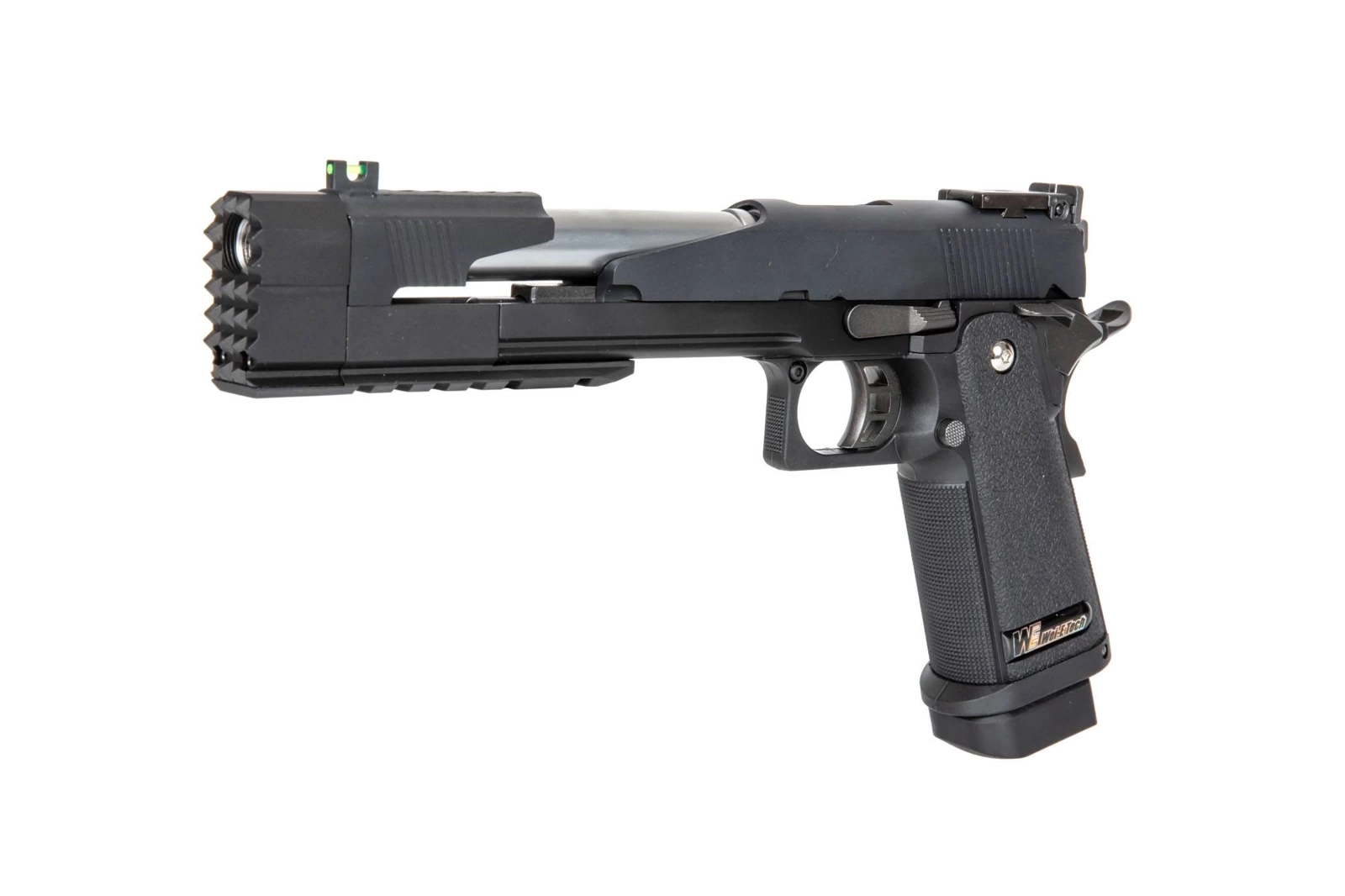 A gas replica based on a Hi-Capa 7" pistol. The main structure of the pistol was made of metal, however, the pistol grip panels with anti-slip texture were made of durable polymer. Excellent craftsmanship of the parts and their alignment guarantee a problem-free and precise operation of the replica.