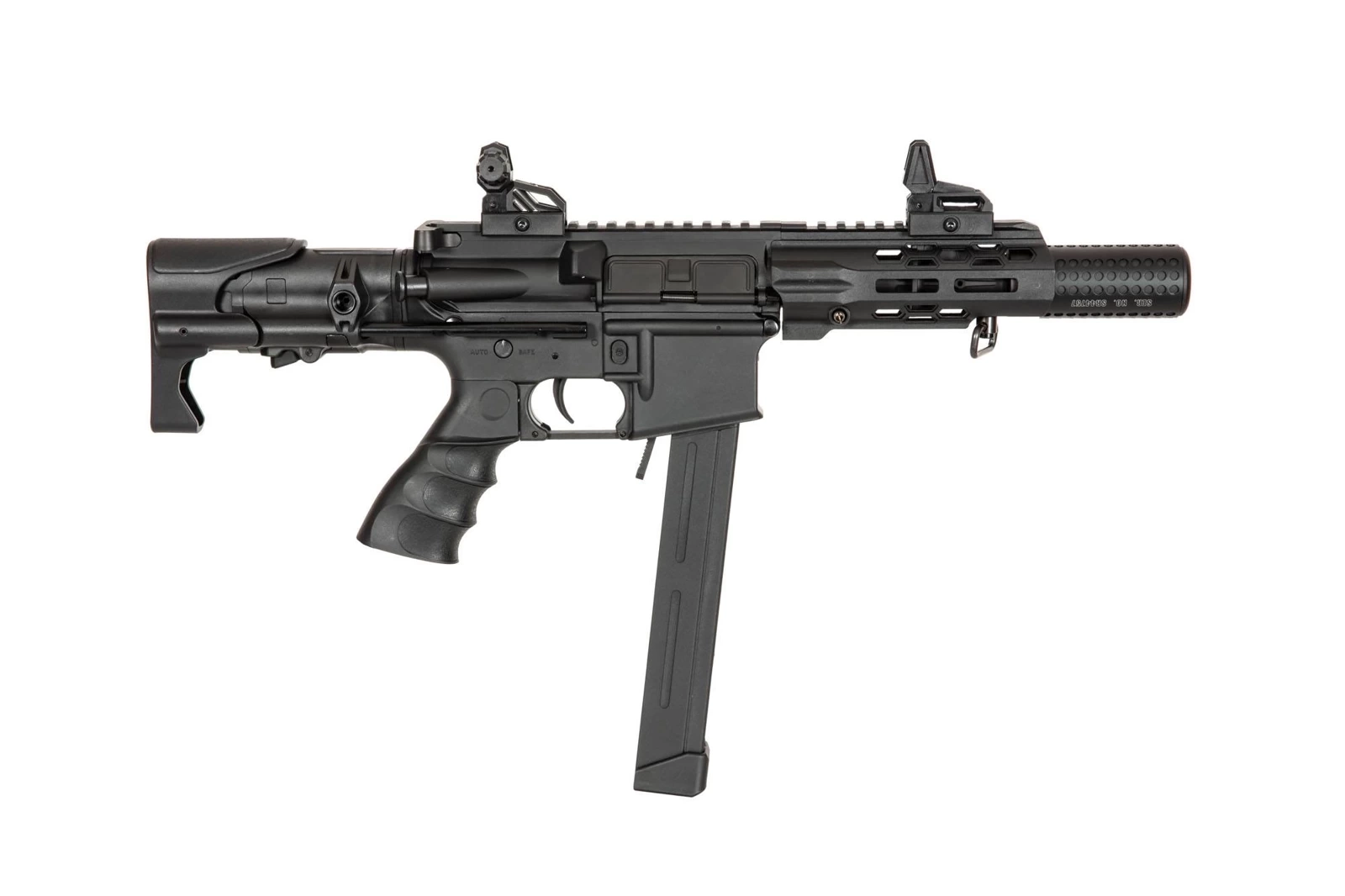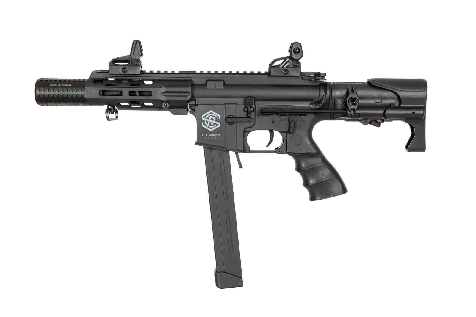SR4 FALCON-ZS is a light and compact AEG submachine gun replica. Majority of elements (including the receiver) were made of reinforced nylon polymer. External parts such as the barrel, the stock slide, the silencer, the shell ejection window flap and manipulators were made of metal.