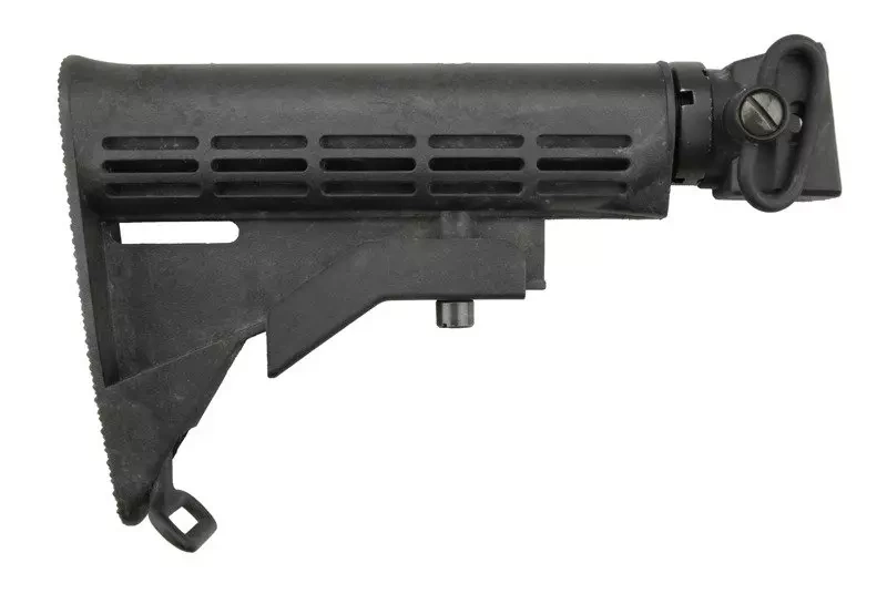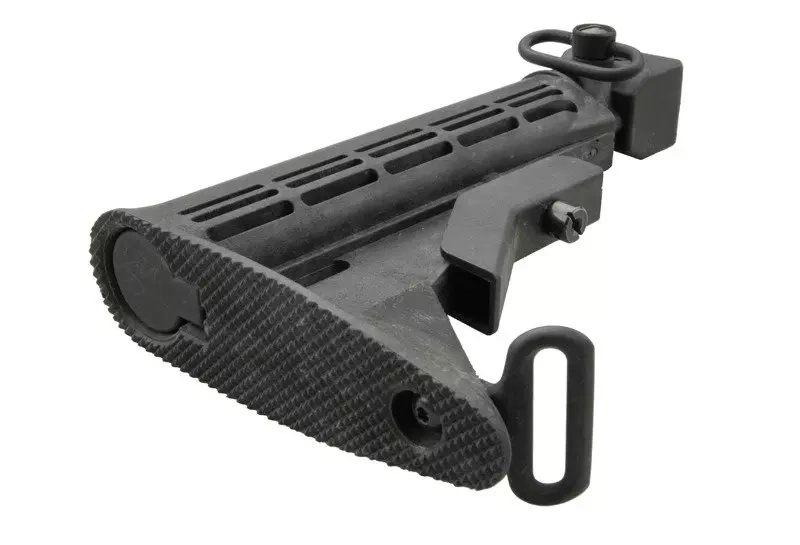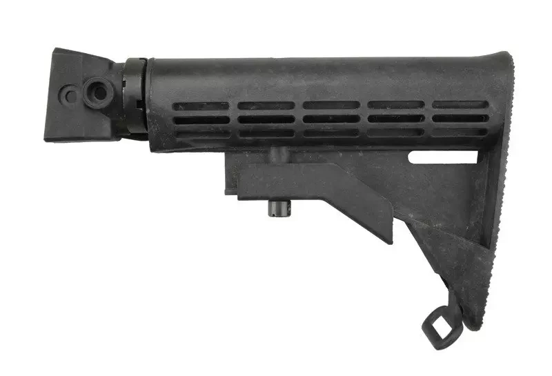 An universal multi-position stock for the AK type replicas is based on the M4 type replicas stock. The stock’s pipe is made of metal ( ZnAl ) and the tactical sling attachment point whiles as, on the other hand, the stock’s body is made of durable plastic. The stock’s foot is equipped with a porous surface thanks to which it is very stable. Dedicated to the model CM039C.