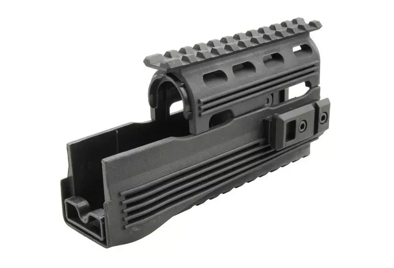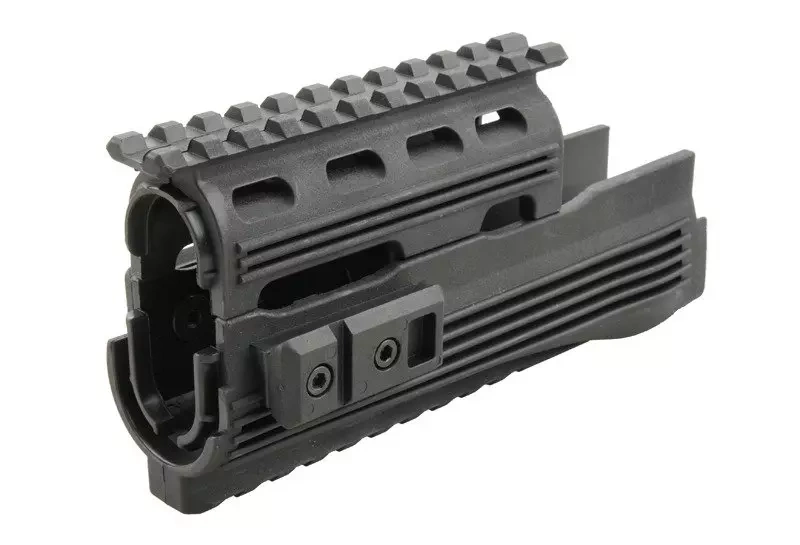 The precisely made RAS conversion for the AK type replicas is made of plastic material. The conversions set includes the upper and the lower front grip covers with RAS rails. The front grip is equipped with four RAS rails. The lower and the upper rails are longer and are 105mm and 120mm long, while as the two side rails are 45mm long each.