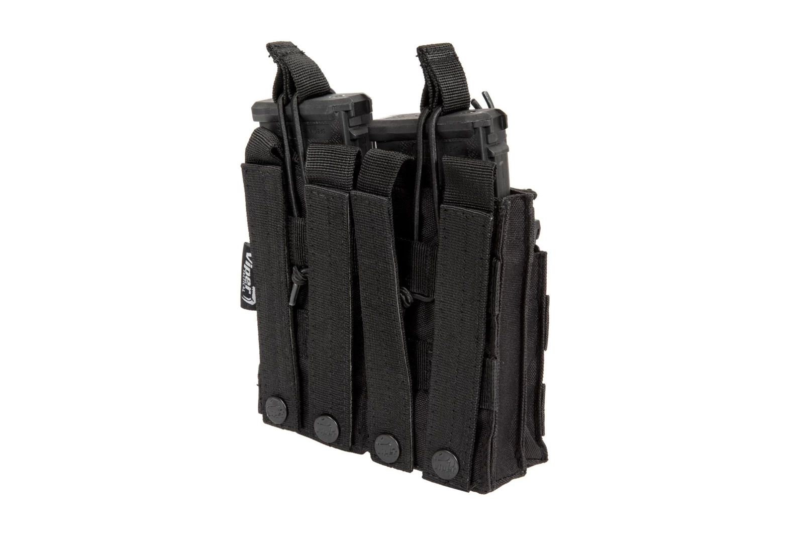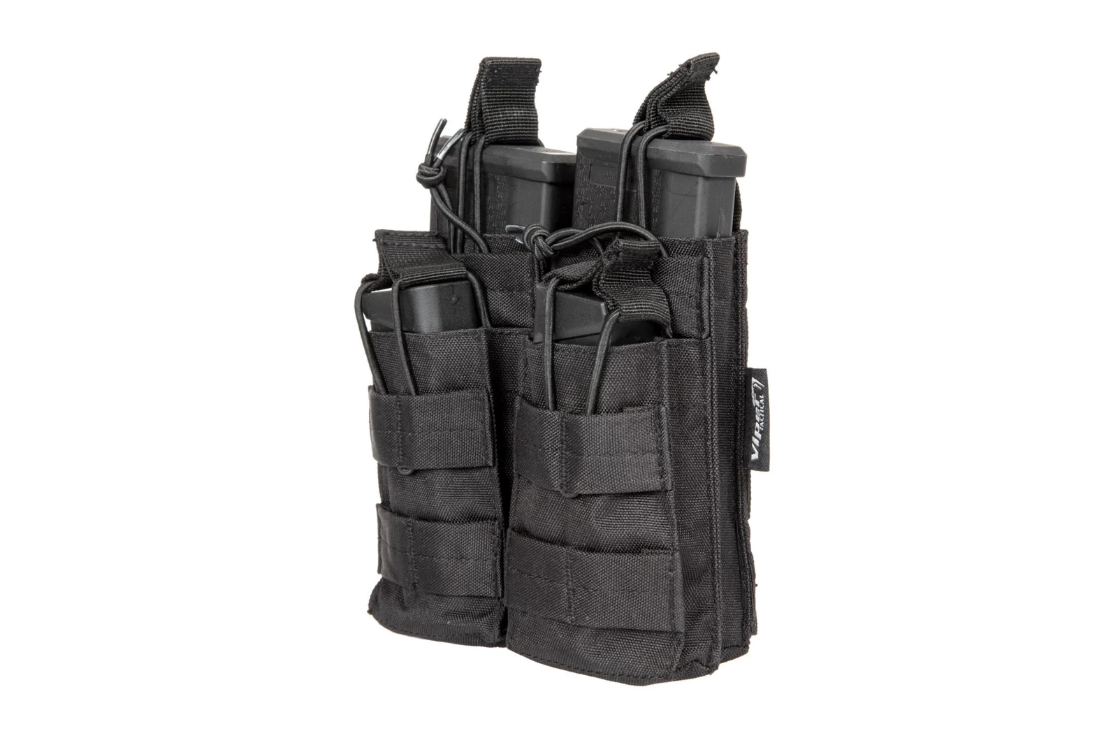 A double magazine pouch made of durable nylon by Viper Tactical, housing a total of 4 M4 / M16 type magazines. An elastic cord protects the magazines against falling out. Additional MOLLE straps are sewn on the front of the magazine pouch, allowing for the attachment of additional equipment. The magazine pouch can be attached to any equipment compatible with the MOLLE standard.