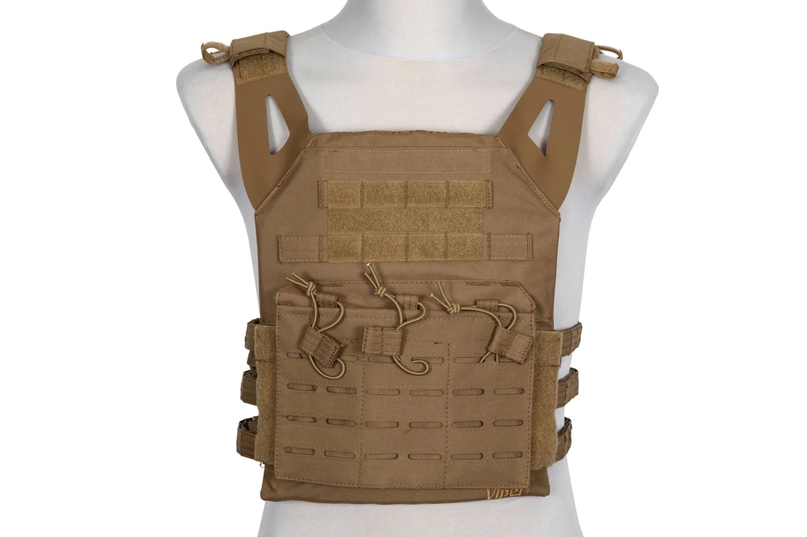 A comfortable tactical vest made out of strong nylon. Two plates made with both MOLLE and Laser-Cut systems will allow you to extend the vest with additional pouches. The skeletal cummerbund will allow the vest be adapted to the user. On the front plate there are 3 pouches for 3 M4 / M16 magazines At the top of the front plate there is a flat Velcro pouch and a Velcro panel. Comfortable shoulder pads connect both plates at the top.